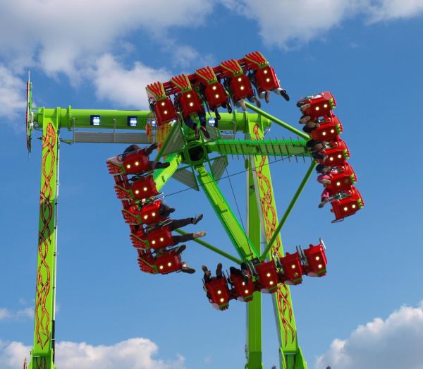 Das spektakuläre Hoch- und Rundfahrgeschäft: Mit 100 km/h in 15 Metern Höhe sorgen zwei konkurrierende Fliehkräfte für ein intensives und einzigartiges Fahrgefühl!